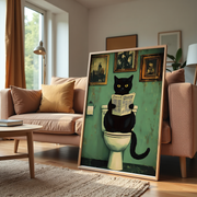 Funny Black Cat Reading Newspaper Wall Art